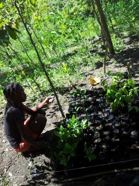 L’un de son premier projet est la mise en place d’une pépinière afin de reboiser la montagne qui l’entoure. Devant sa motivation, tout le monde s’est mis à collecter graines, noyaux, plantules,… afin de constituer une première base. Jimmy de Jérémie nous a offert quelques sacs et c’est ainsi que le projet a été lancé depuis le mois d’août.